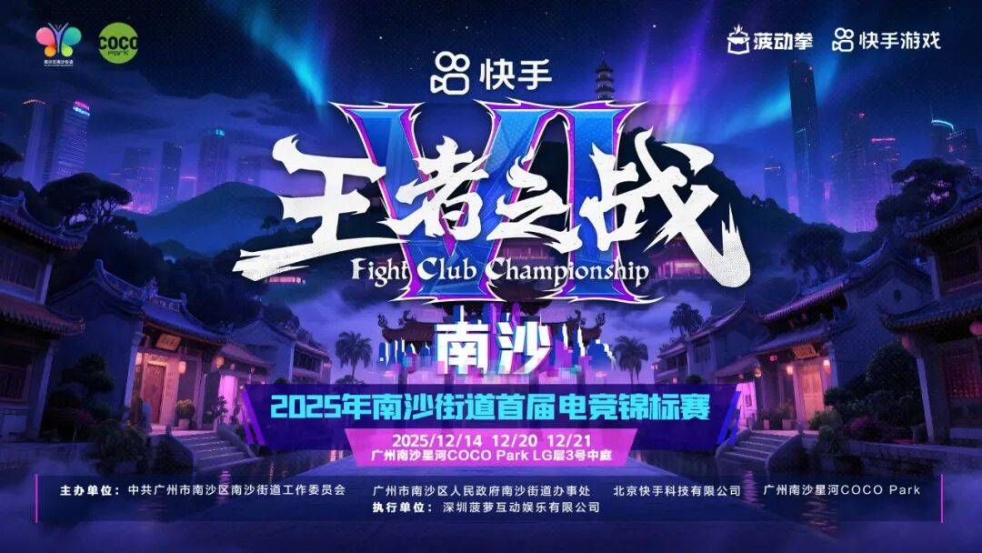 12月,南沙街道将携手快手游戏、南沙星河COCO Park、菠动拳FightClub,为全体格斗游戏爱好者打造一场属于南沙的年终格斗电竞狂欢——“快手王者之战VI·南沙”暨2025年南沙街道首届电竞锦标赛!